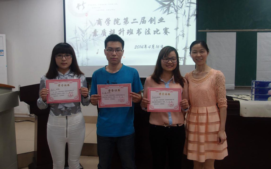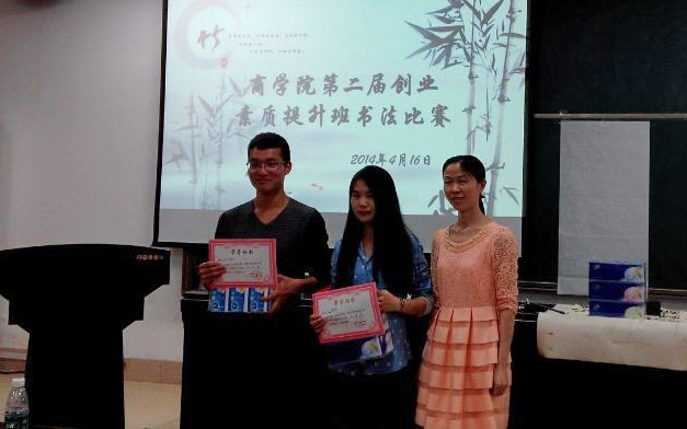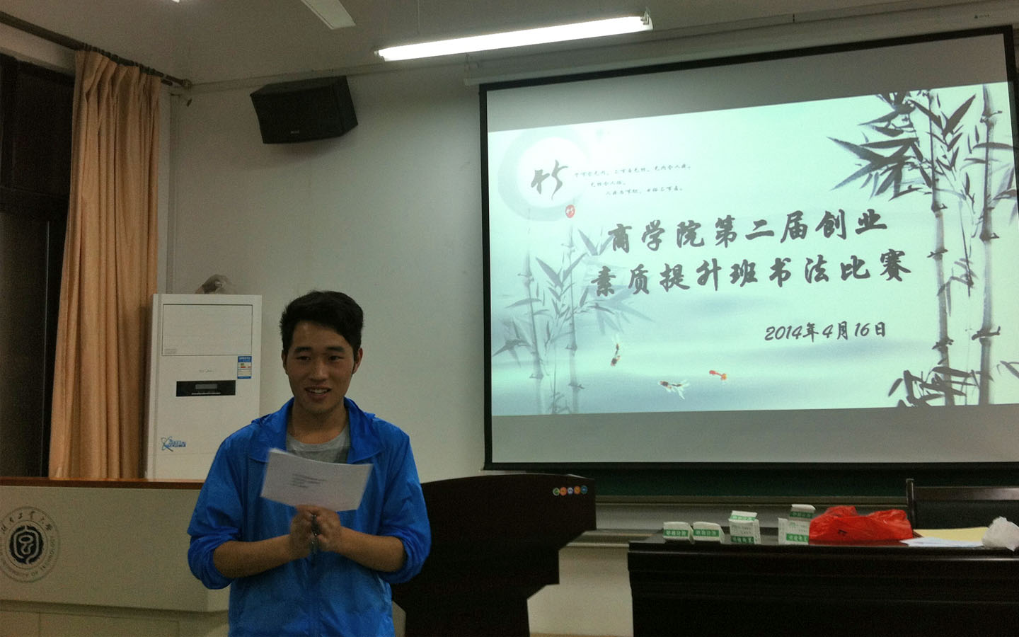 为了鼓励和提升同学们对书法的热爱,2014年4月16日晚7时,36365线路检测中心no1第二届创业素质提升班在商院楼207教室举行了书法比赛。